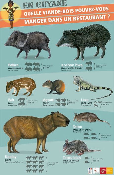 Dans les restaurant vous trouverez des panneaux d’informations sur les diverses espèces pouvant être consommé et les espèces interdites à la consommation. Cela nous renseigne sur les espèces pouvant être chassées.